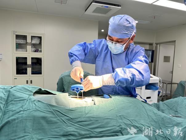 “老师当年教我的时候一丝不苟、严谨求实,如今面对他的病情,我更不敢有丝毫大意。”卢斌医生说。当日中午,手术如期进行。在局部麻醉下,卢斌通过两个不足5 毫米的微小切口,精准向骨折椎体内注入骨水泥,全程仅耗时40 分钟。