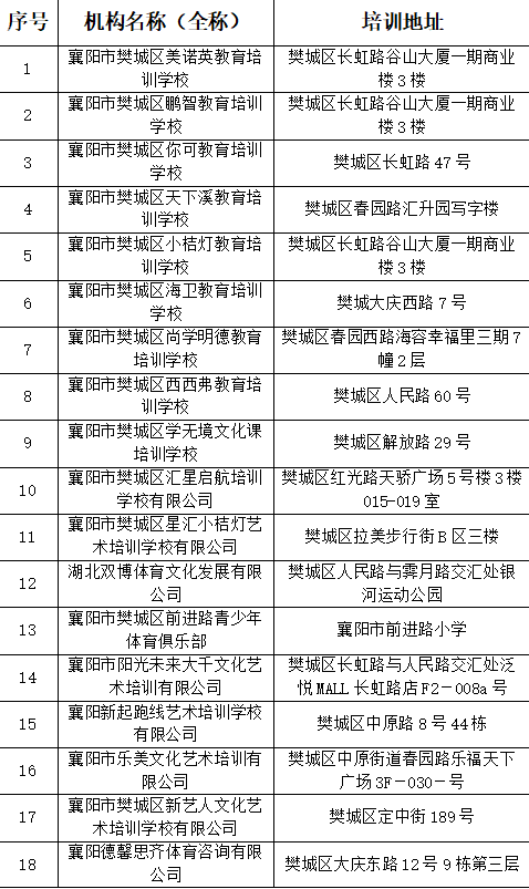 襄阳市樊城区校外培训机构咨询、举报、投诉电话:樊城区教育局0710-3818445、樊城区科技局0710-3212449、樊城区文旅局0710-3705300。