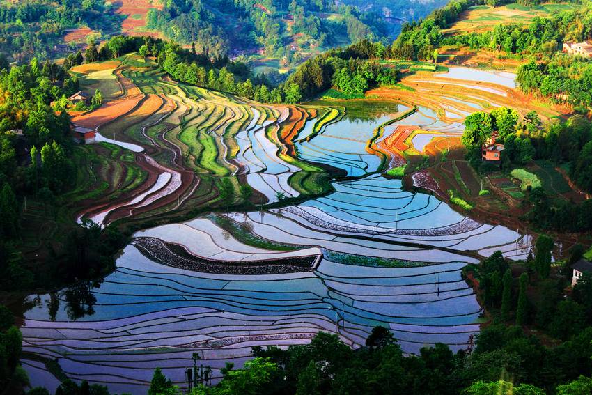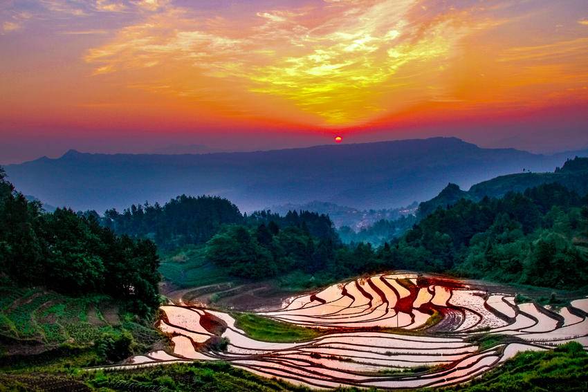 阳光下的谋道长坪梯田