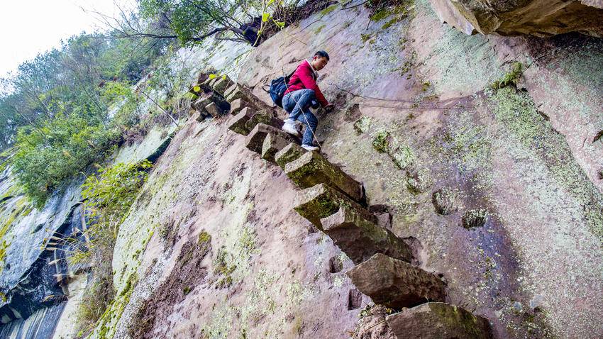 谋道中坝村古盐道绝壁兵洞