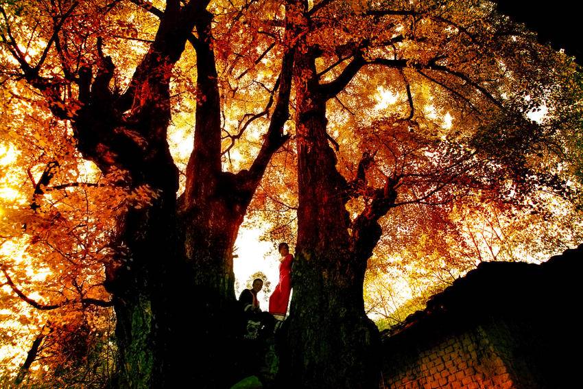 情暖金秋 湖北利川谋道下磁村,千年古银杏树下,一对恋人恋语声声。