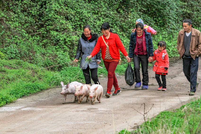利川谋道大兴农科村,村民赶着小猪上街