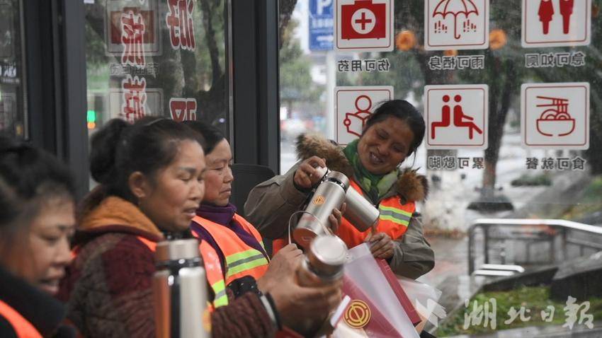 在人民广场旁的工会驿站里,工作人员热情地招呼着过往的外卖骑手、环卫工人、出租车司机,将一份份“温暖礼包”递到他们手中。礼包里有发热脚垫、暖贴,还有一只贴了个人名字的保温杯——每一样都实用,每一样都透着贴心。