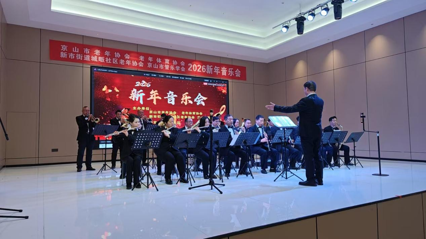 湖北日报客户端讯(通讯员 刘博文)1月26日,新市街道城畈社区老年协会,在京山市老年协会联合市老年体育协会协办与京山市音乐学会的专业支持下,成功举办2026新年音乐会。本次活动旨在丰富老年群体的精神文化生活,营造欢乐祥和的新春氛围,展现新时代老年人老有所为、老有所乐的精神风貌。