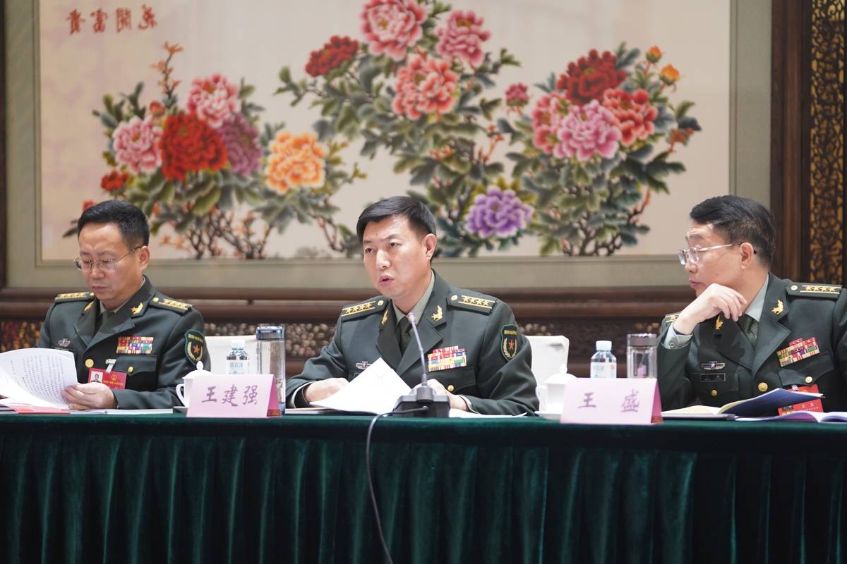 1月27日,驻鄂解放军和武警部队代表团审议省政府工作报告,省人大代表王建强(中)发言。(湖北日报全媒记者 魏铼 摄)