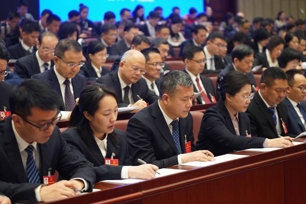 1月27日,湖北省十四届人大四次会议开幕会,代表们认真听取政府工作报告。(湖北日报全媒记者 魏铼 摄)