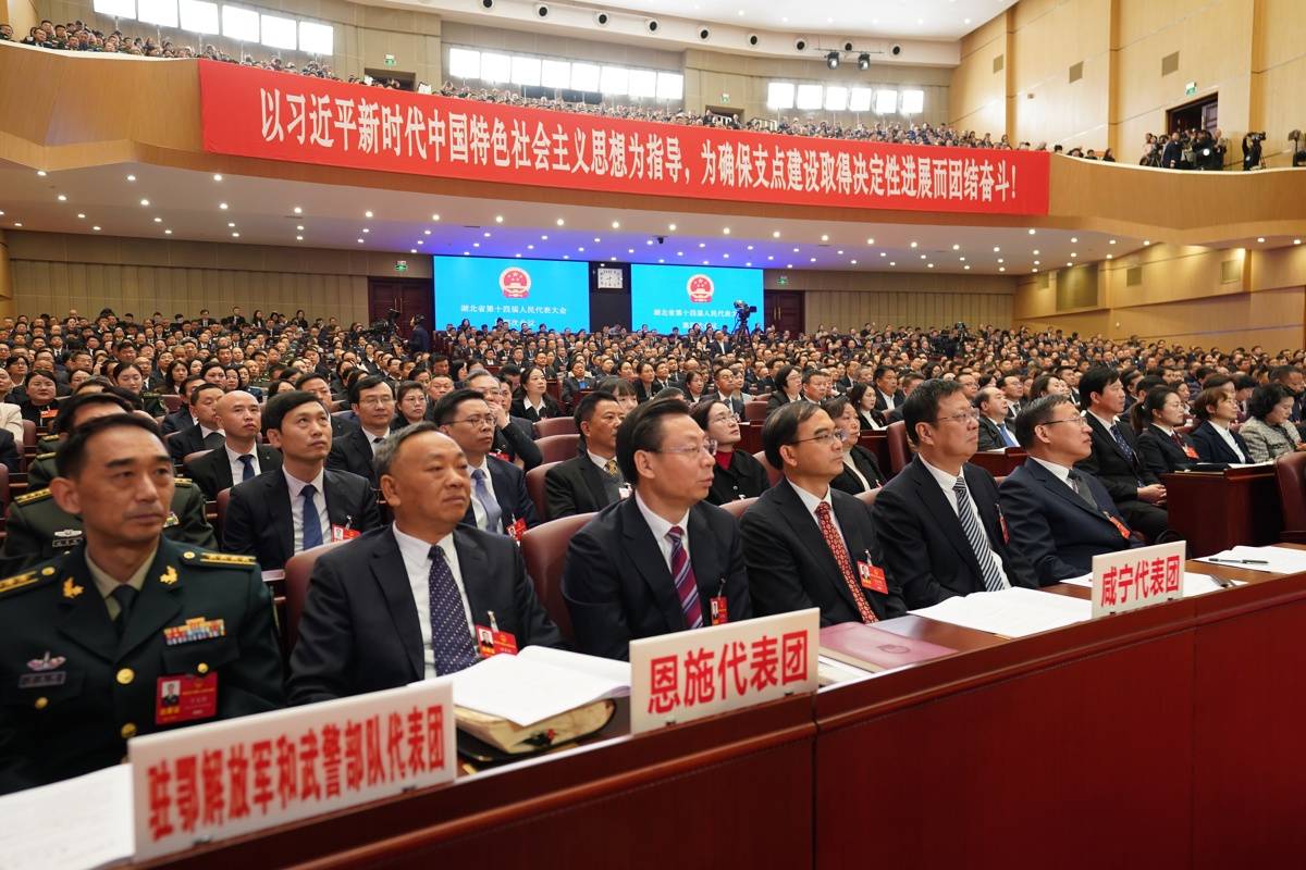 1月27日,湖北省十四届人大四次会议在武汉洪山礼堂开幕。(湖北日报全媒记者 魏铼 摄)