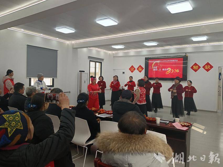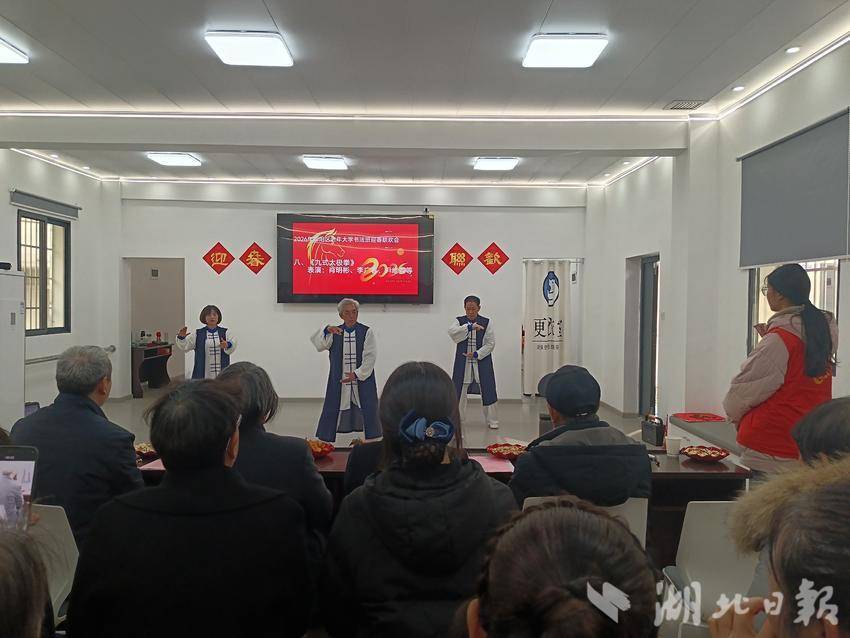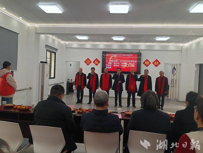 湖北日报客户端讯(通讯员郭娟娟、杨谨歌)1月27日下午,郧阳区城关镇兴郧路社区新时代文明实践站联合老年大学书法班,在社区老年大学活动室举办“墨韵飘香迎新春 银龄欢聚展风采”暨“墨韵飘香·福寿安康”2026年迎春联欢会。来自社区老年大学书法班的学员及周边老年朋友们欢聚一堂,以17个自编自演的精彩节目,献上了一场集活力、温情与文化底蕴于一体的视听盛宴。