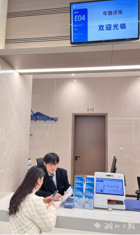 窗口现场答疑,提供精准指导。在葛店经开区综合服务中心设立年报咨询窗口,安排专人提供“一对一”操作指导,现场演示手机端、电脑端填报流程,帮助解决账号注册、信息录入等实际问题,实现“即来即报、即报即走”。同时利用大厅电子显示屏每日滚动播放《2025年度年报填报指南》短视频,以“动画演示+语音讲解”形式生动展示全环节操作流程,让办事群众“抬头可见、驻足可观”,有效提升政策触达率。