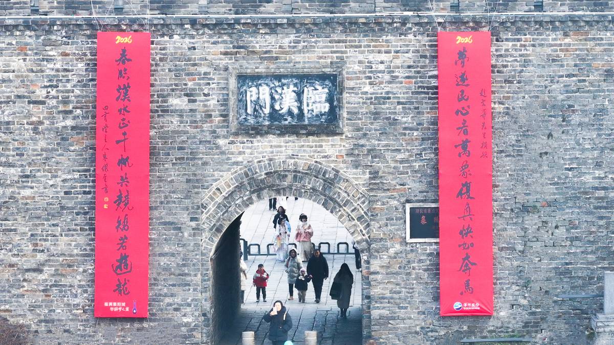 长逾7米的巨幅春联在汉江清风中舒展,不仅为2026新春增添了浓厚年味,更传递出襄阳赓续城市文脉、喜迎新春的美好愿景。