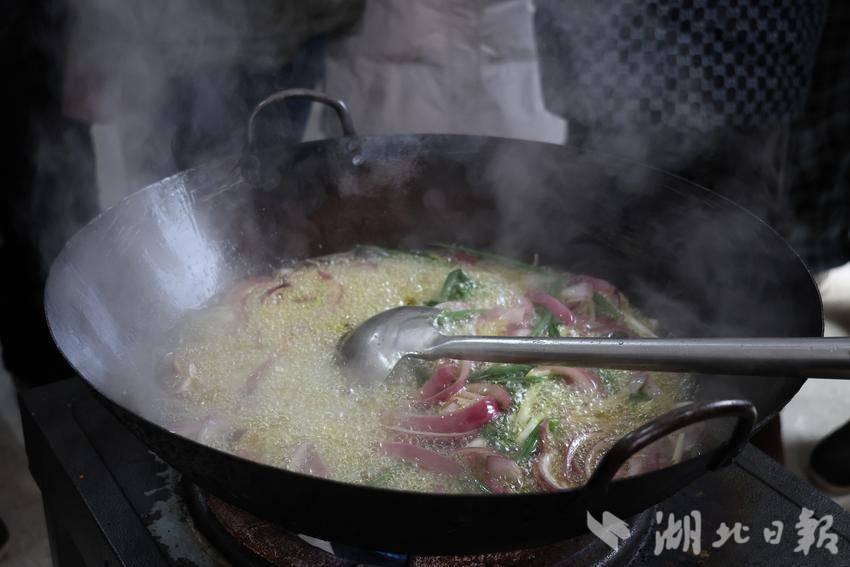 1月26日,在该乡甘露村,培训老师对食材处理、刀工技巧、火候把握、油温控制等方面进行讲解,现场演示炸花生米、熬制辣椒油、炖鸡汤等多道家常菜的制作流程。学员们边学边问边记录,灶台前香气四溢、学习氛围浓厚。