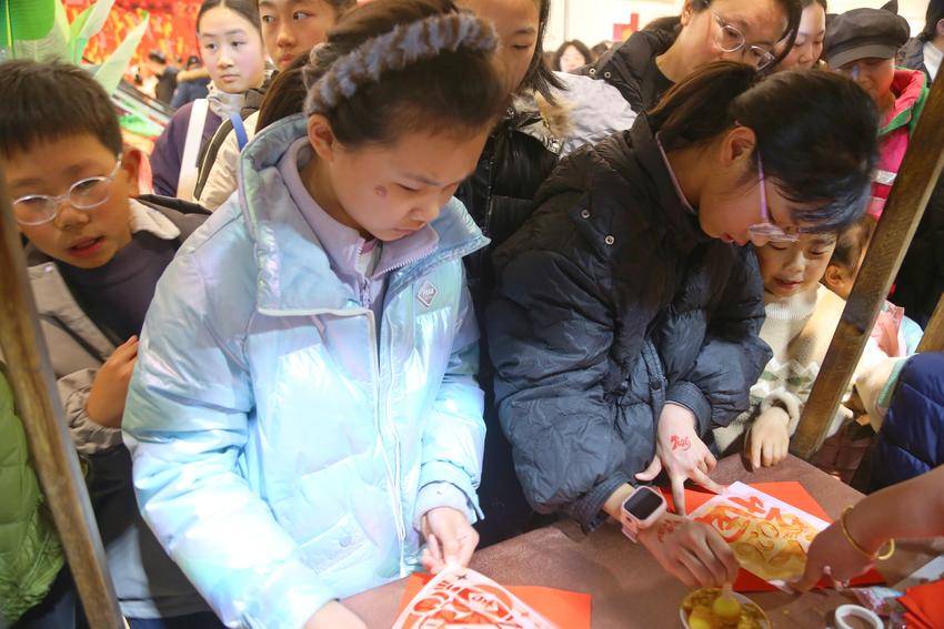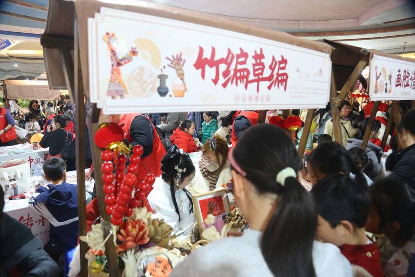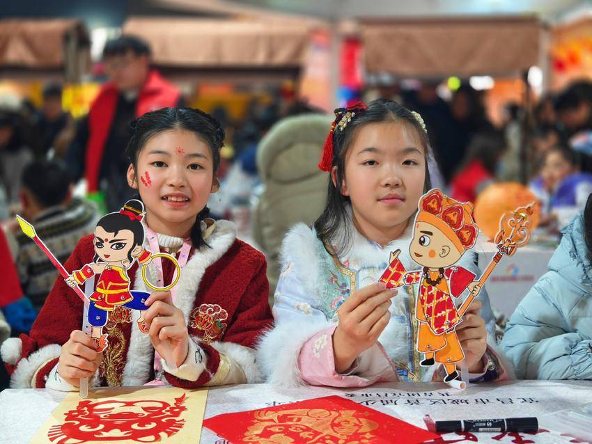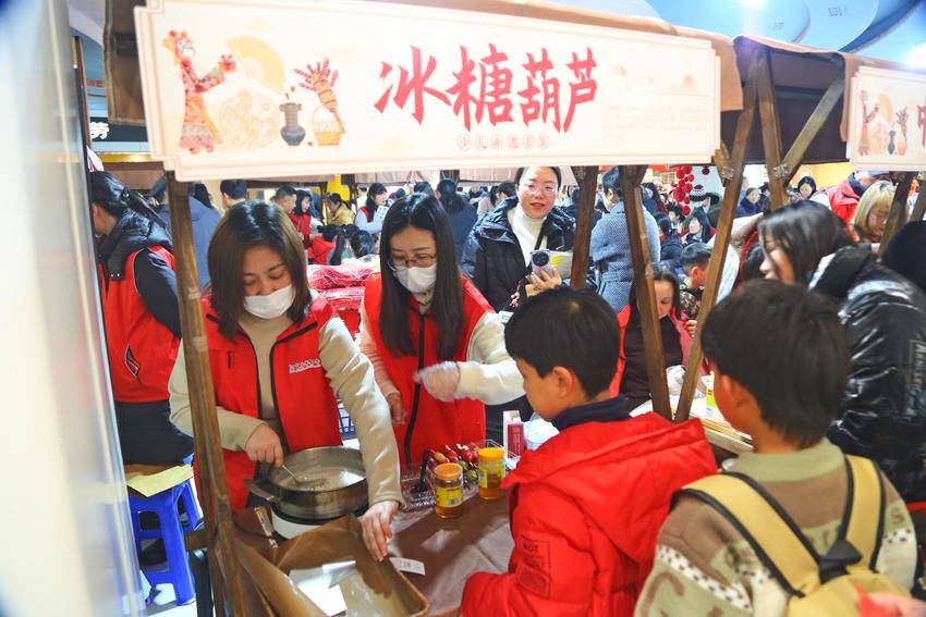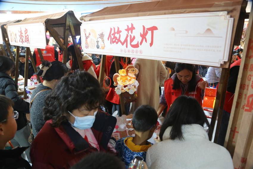除了丰富的指尖非遗体验,市集还兼顾味觉与视觉的双重享受,全方位满足亲子家庭的参与需求。冰糖葫芦展位唤起孩子们的童年记忆,面部彩绘、画灯笼、画脸谱、做花灯等展位,为孩子们打造专属新春装扮;写春联福字、猜灯谜等展位则氛围感拉满,在趣味互动中传递新春美好祝福。此外,中医展示、香囊制作等展位更添文化底蕴,让孩子们在沉浸式体验中,全方位了解传统文化,实现从舌尖到指尖的非遗一站式打卡。