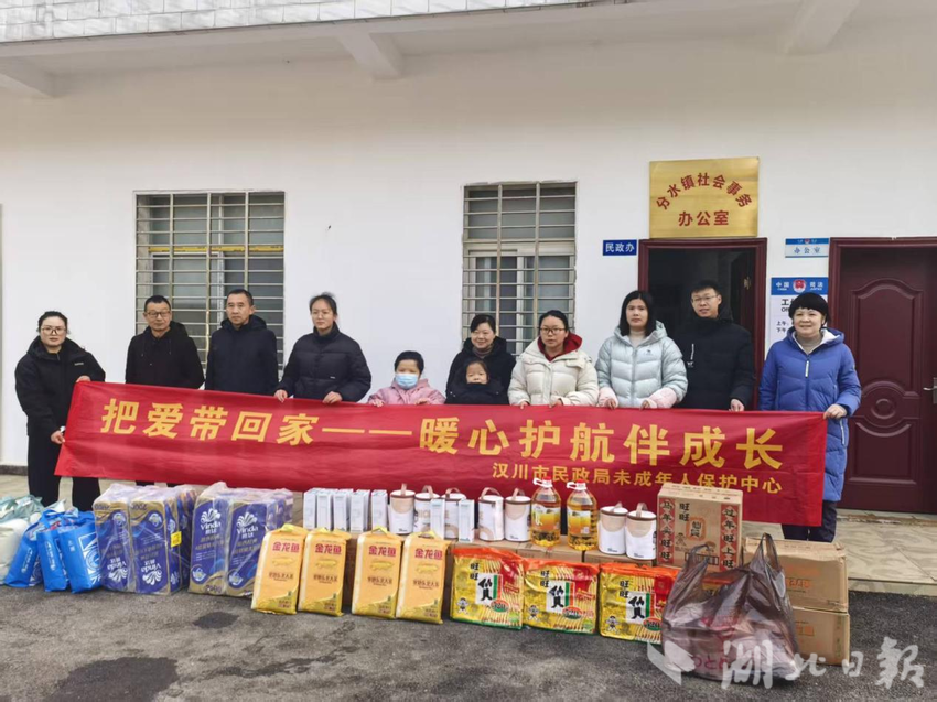湖北日报客户端讯(通讯员江明)1月28日,汉川市分水镇新时代文明实践所、镇妇联、镇民政联合汉川市民政局未成年人保护中心,共同开展把爱带回家“春暖”行动,为辖区留守困境儿童送去冬日温暖与新年祝福。