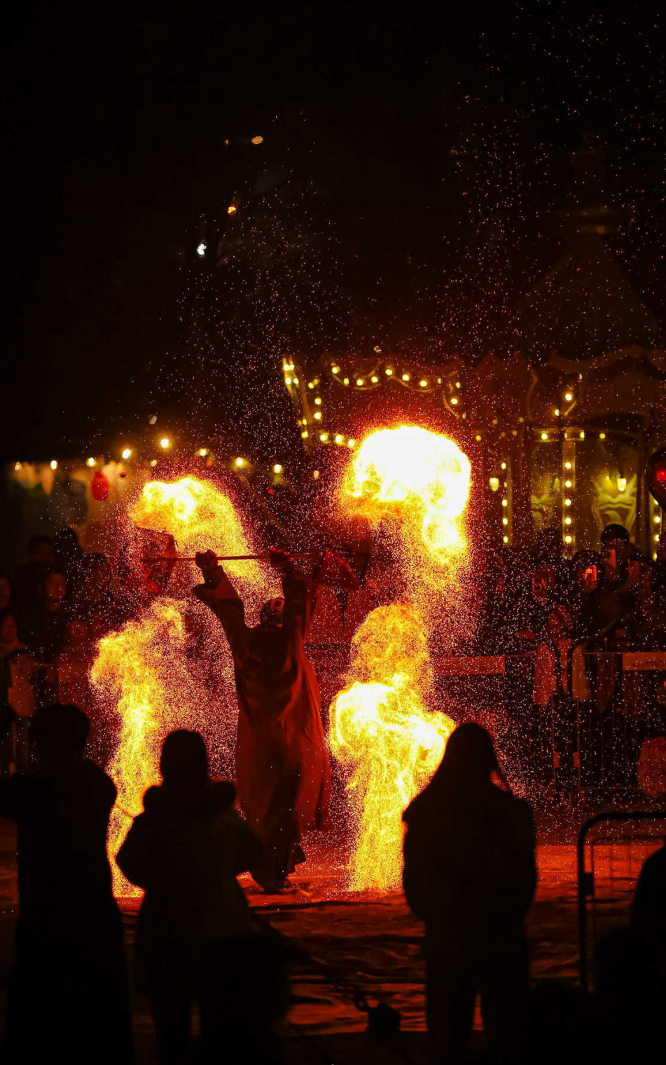 活动内容:观一场“火舞金龙”的非遗绝技。源自古老民间的火壶表演,是将力量与美学融于一体的艺术。表演者以烈焰为笔,夜空为布,挥洒出流光飞舞的震撼图景。这不仅是一场惊心动魄的视觉盛宴,更承载着新年红红火火、驱邪纳福的美好祝祷。