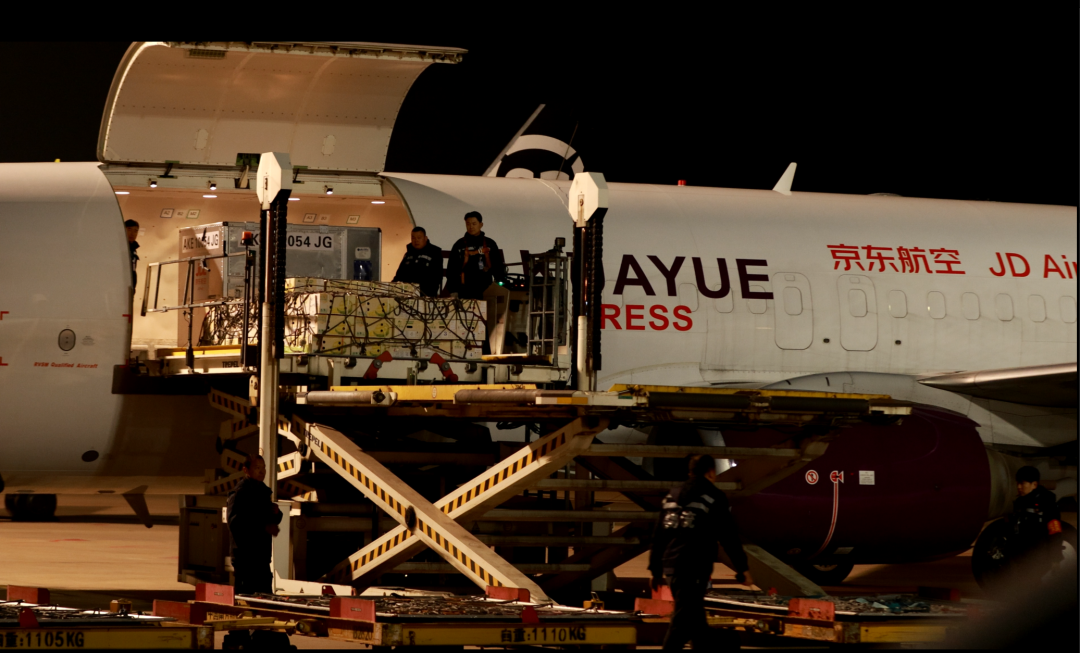 该航线由京东航空B737-800BCF全货机执飞,单程最大业载达22吨,可满足各类货物批量运输需求。湖北机场集团企业管理部副部长刘锐介绍,该航线是武汉天河机场近四年来开启的首条国际全货运航线。航班频次按季节动态调整,其中1—10月份每周执飞三班(周二、周四、周日),11-12月份进行航班加密,每周执飞五班(周二、周三、周四、周五、周日)。预计全年执飞174班,全年完成货量约723吨。依托定班直飞与高频稳定优势,实现货物“即装即运、快速通达”,大幅提升跨境物流时效。1月27日晚,满载泰国鲜榴梿的货机从曼谷飞回,落地武汉天河机场据悉,“武汉⇋曼谷”国际货运航线去程重点搭载光谷高价值电子产品、精密仪器及普货、电商包裹,助力“鄂货出海”提质增效。回程则重点运输以榴梿为主的泰国热带水果及东南亚特色生鲜,让海外特色好物直抵武汉,丰富湖北本地进口市场品类,满足市民多元化消费需求。