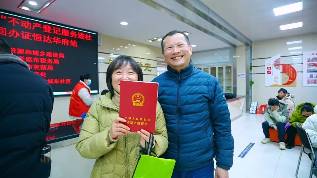 “在家门口就把不动产证书办了!在农历春节马上到来的时候,这是我收到的最特别的新年‘礼物’。”1月29日,孝感城区恒达华府项目业主魏女士在小区巡回办证现场办理完不动产登记后高兴地说。