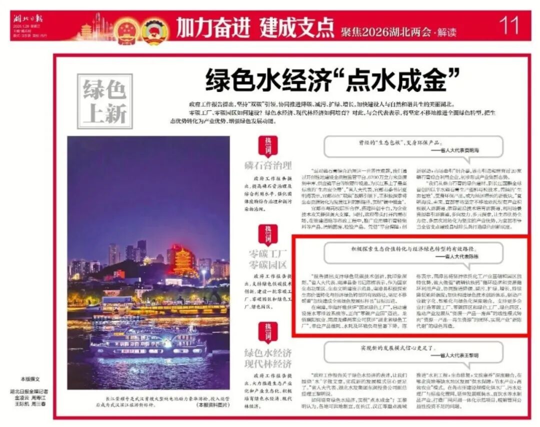 1月28日,《湖北日报》刊发两会专题报道,聚焦绿色发展,专访了省人大代表、南漳县委书记陈栋。