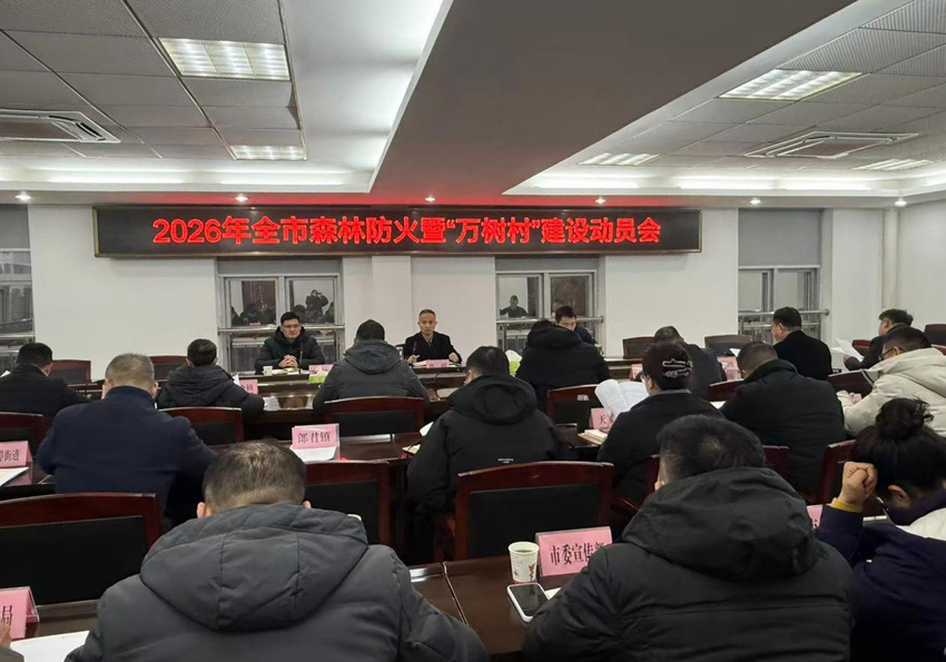会议通报了2025年度“万树村”建设奖补情况,宣读了2026年“万树村”建设实施方案,分析了森林防火形势,并提出春节前后工作建议。田店镇、三合镇汇报森林防火准备情况,城北街道、杨岭镇交流2025年“万树村”建设经验。