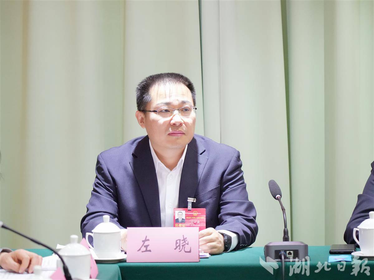 省人大代表、猇亭区委书记左晓正在参加代表小组会议。