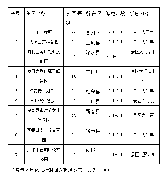 本次共有 9家国有A级景区参与优惠,具体名单及优惠方式如下: