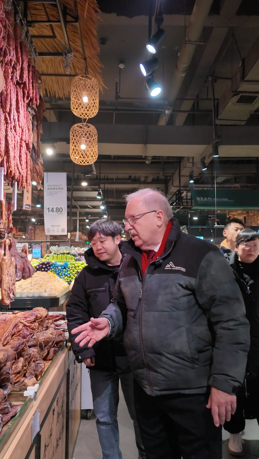 汤姆叔叔挑选腊肉。(湖北日报全媒记者 周卓琳 摄)