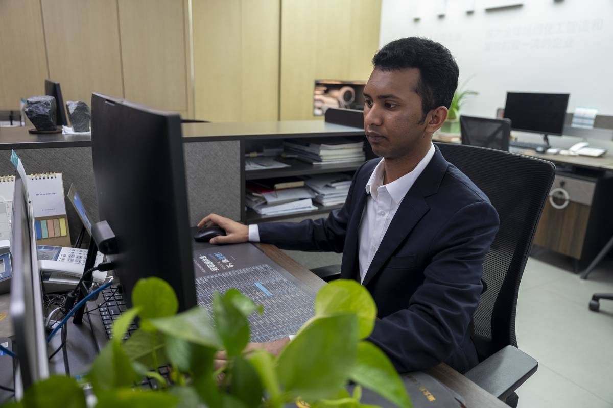 7年了,他的普通话水平日益提高,日常交流完全没有障碍,再加上他精通孟加拉语和英语,让他在工作中如鱼得水。