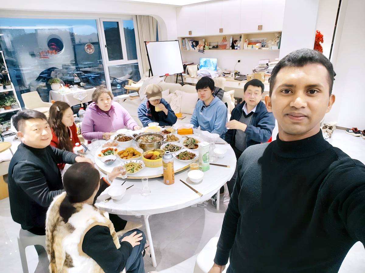 尽管没有回过家,肖恩一点也不孤独。连续两年春节,公司老板陈静都邀请肖恩到兴山老家,把他当成自己的家人。考虑到孟加拉的宗教信仰,陈静对春节菜品进行安排,桌上不上猪肉等食材。