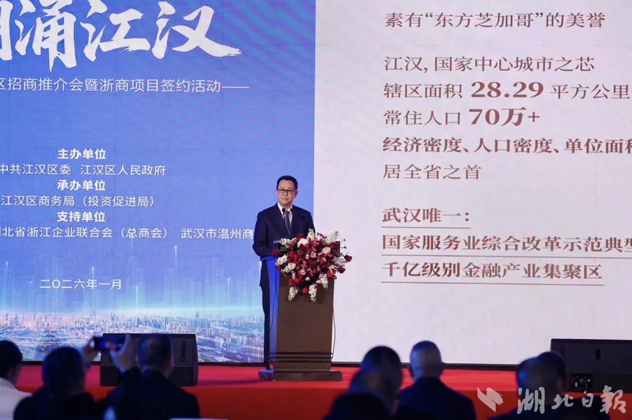 本次活动由江汉区委、江汉区人民政府主办,江汉区商务局承办。据了解,江汉区将聚焦产业链“稳链、补链、强链、延链”,创新应用场景招商、资本招商、载体招商等模式,完善项目全周期服务机制,推动历史文脉与现代产业、商贸优势与科技创新深度融合,促进与浙商合作实现深度协同、共生共荣。