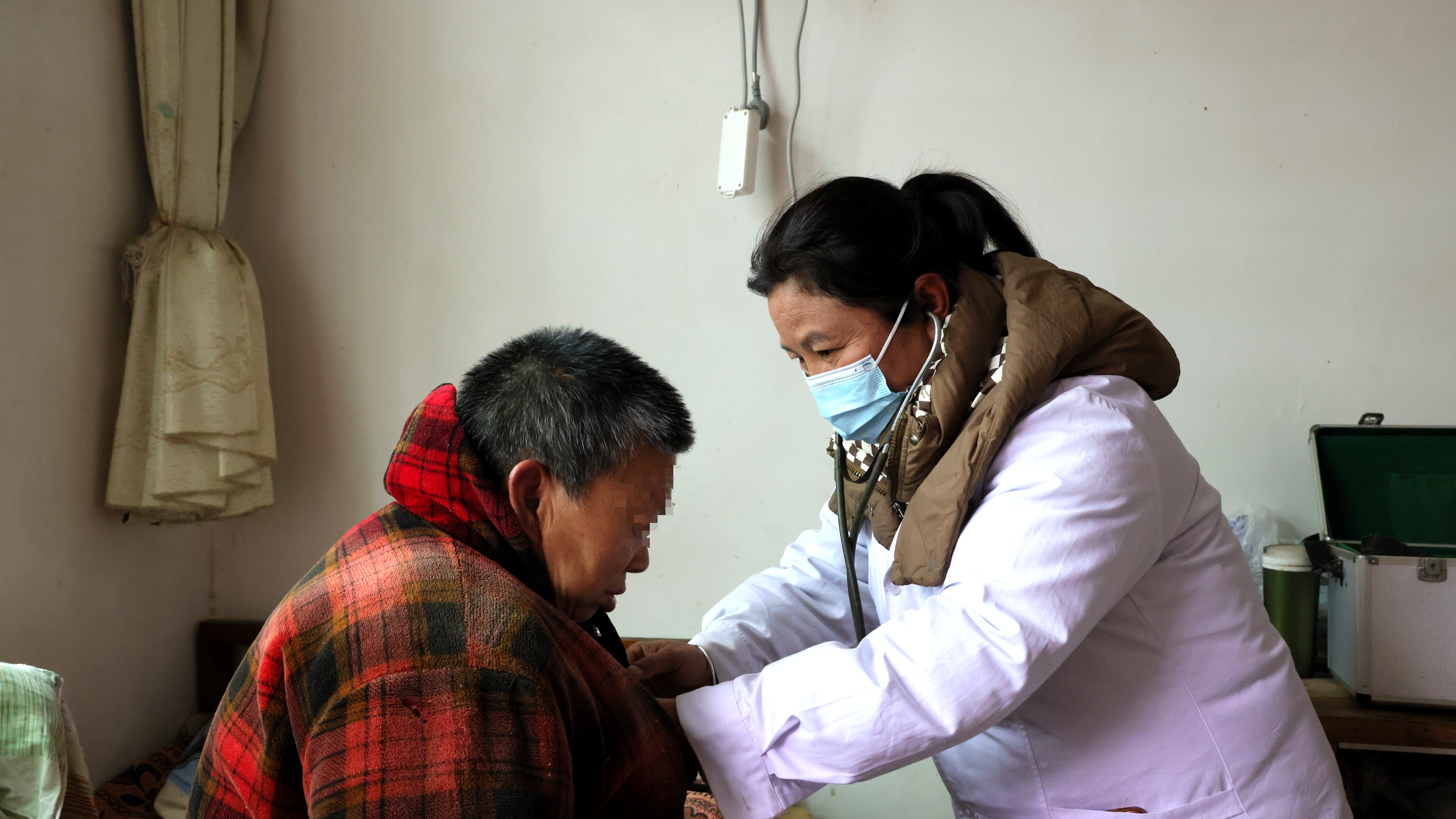 49岁的卫生室负责人郭正香裹紧深灰色的棉大褂,搓了搓冻得发僵的手,径直停在7组村民谢恩泽家门前。