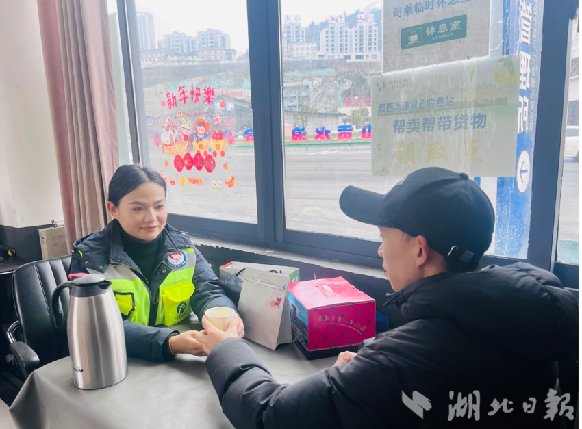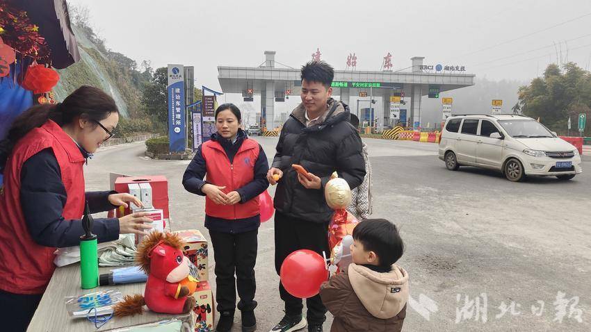 同样的暖意在其他站点延续。在建始东收费站,“红蔷薇”服务团队设置的抽奖活动吸引了过往司乘。马年玩偶、暖手宝、实用水杯等礼品伴着欢声笑语送出,收费政策指南也一同递到司机手中。建始收费站则准备了装有食品、春联的“暖心礼包”和自编的“冬季行车安全指南”。“师傅,千万注意车速,平安回家!”志愿者的叮嘱格外亲切。