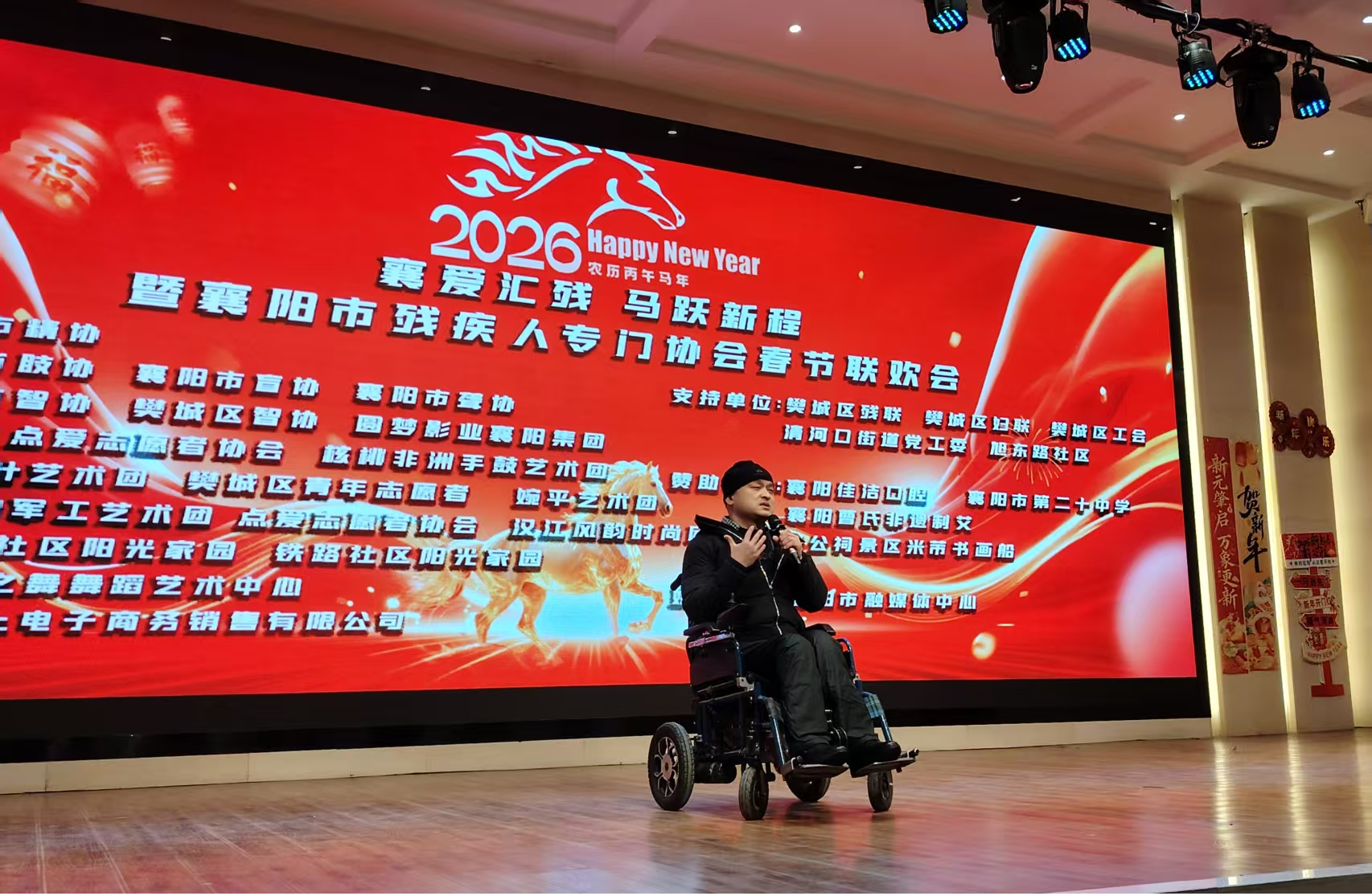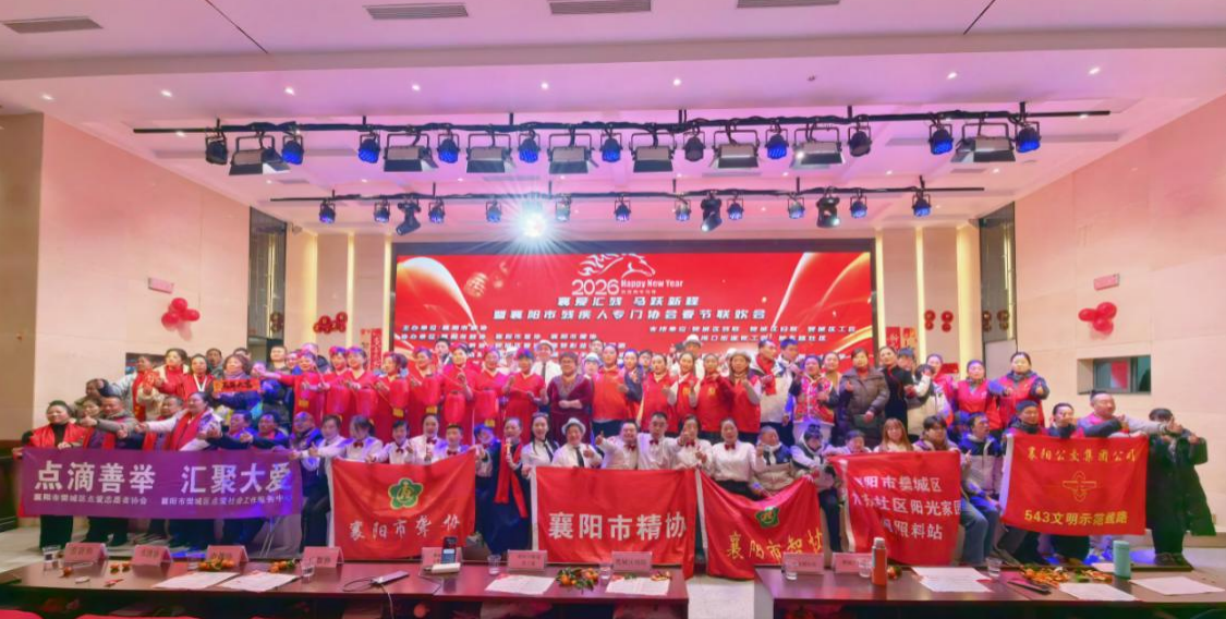 湖北日报讯(记者张慧华、通讯员刘珊)1月31日下午,襄阳市残疾人朋友和社会各界代表、社区居民、志愿者等齐聚一堂,举办2026年襄阳市残疾人专门协会春节联欢会,该活动由襄阳市精协、盲协、聋协、肢协、智协等五大残疾人专门协会主办,以“襄爱汇残 马跃新程”为主题,残健共融迎新春。