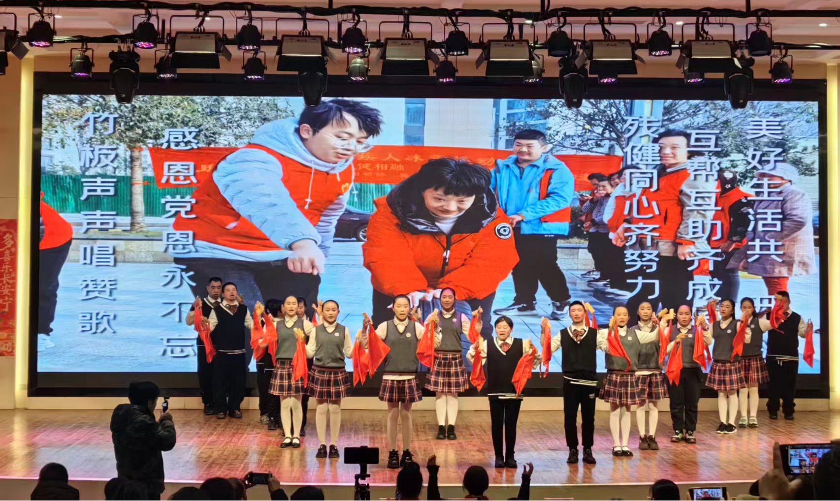 随着音乐响起,精彩节目轮番登场。五类残疾人演员、爱心人士和志愿者一起,用舞蹈、演唱、乐器表演、朗诵、快板等形式多样的精彩节目,展现残疾人朋友积极向上、热爱生活的精神风貌,表达对新春的美好期盼、对美好生活的无限向往。