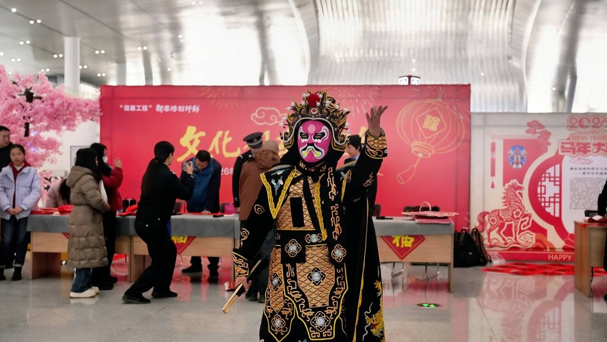 襄阳华侨城演员带来的变脸节目惊艳全场,卡通歌舞表演赢得阵阵掌声,孩子们在书法家指导下提笔写福,车站准备的“福袋”让这份年味得以珍藏。活动现场,青年志愿者穿梭其间,为重点旅客送上“福”字与贴心服务。