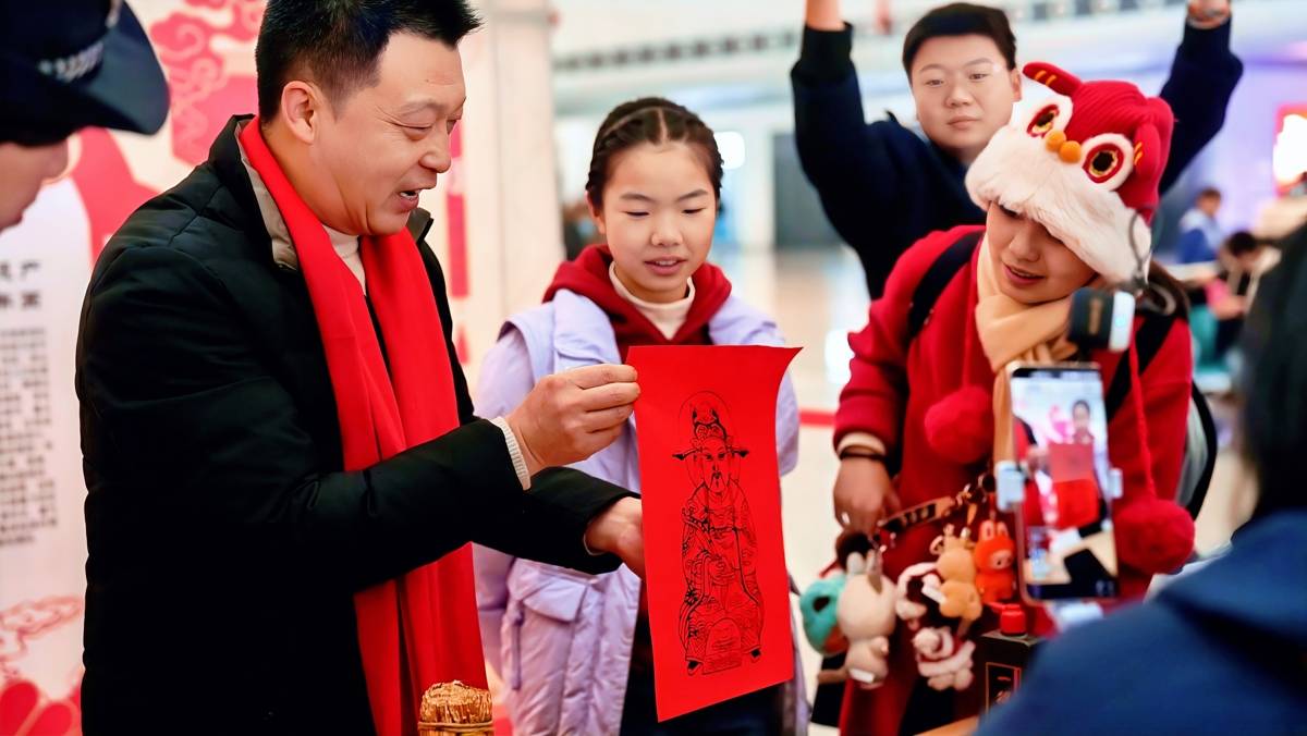非遗展演成为本次活动一大亮点。老河口木版年画传承人现场演示木刻版拓印,15幅色彩艳丽的年画吸引旅客驻足;葫芦烙画艺人以火为“墨”勾勒山水花鸟,剪纸传承人用红纸翻飞剪出吉祥纹样。首次亮相的非遗展区内,融合地域文化与铁路元素的展品,让旅客近距离感受传统文化魅力。