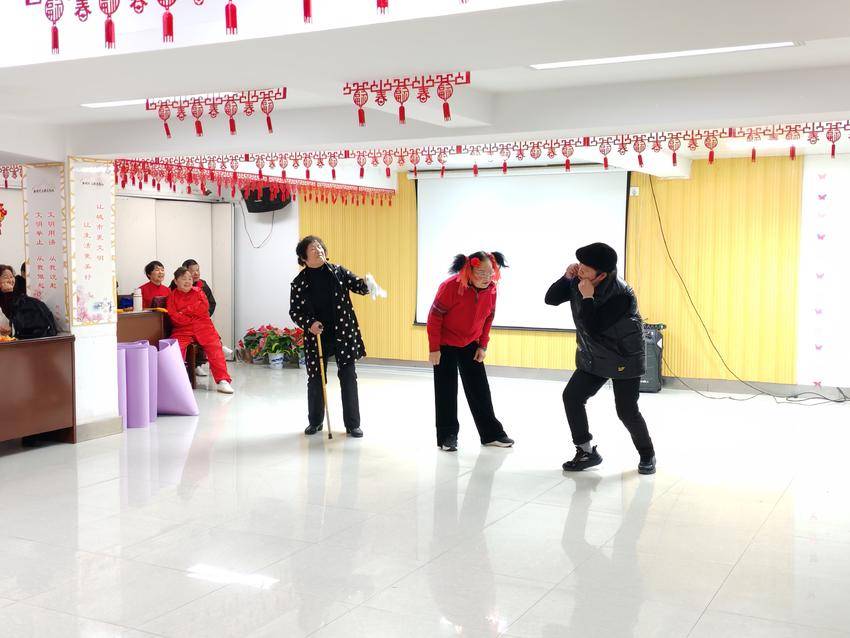 随着联欢会进入高潮部分,文艺表演环节精彩纷呈,令人目不暇接。口琴班奏响《欢乐颂》与《我们的生活充满阳光》,瑜伽班以柔美身姿演绎《人间第一情》,京剧班带来经典选段《军民鱼水情》,武术班刚劲有力地展示《中国功夫》,小品《傻妞相亲》更以诙谐表演赢得满堂欢笑。