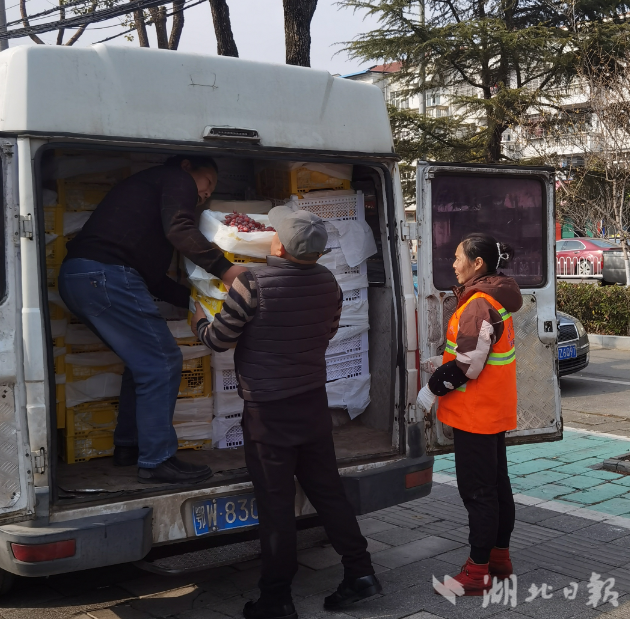 近日,新洲区爱心人士、水果商贩江小兵将自费采购的近3万元新鲜水果,送至武汉问津城资(邾城项目部)环卫工人爱心驿站,在持续低温的冬日里,为辛勤工作的“城市美容师”们送上了一份温暖的关怀。