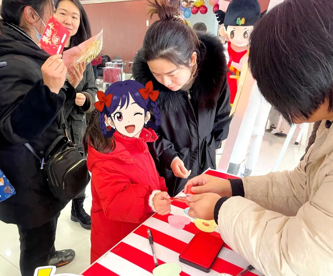 孩子们在签到处写下新年寄语,领取“马年大吉集章卡”后,便化身“庙会小玩家”,穿梭于各个活动区域打卡。集齐印章即可抽取“新年幸运盲盒”,收获新春惊喜。