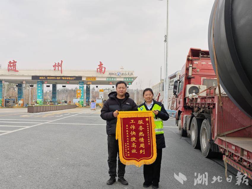 湖北日报客户端讯(通讯员:周金霞)“服务热情周到,工作快捷高效!”近日,一面鲜红的锦旗被某大型物流企业负责人郑重送到湖北交投随岳运营公司随州南管理所,字里行间满含对管理所长期以来支持跨省大件运输的由衷谢意。