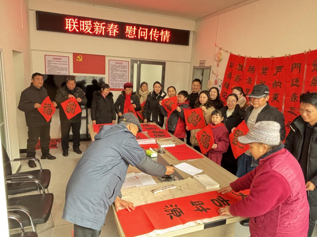 活动现场十分热闹,红纸一铺、笔墨一蘸,书法爱好者挥毫泼墨,一副副红彤彤的春联饱含了对困难群体新春的祝福。随后,志愿者们把三十多份春联和米、油打包好,挨家挨户送到困难群众手里,并嘱咐居民冬季用火取暖注意安全,防诈防骗牢记心中。