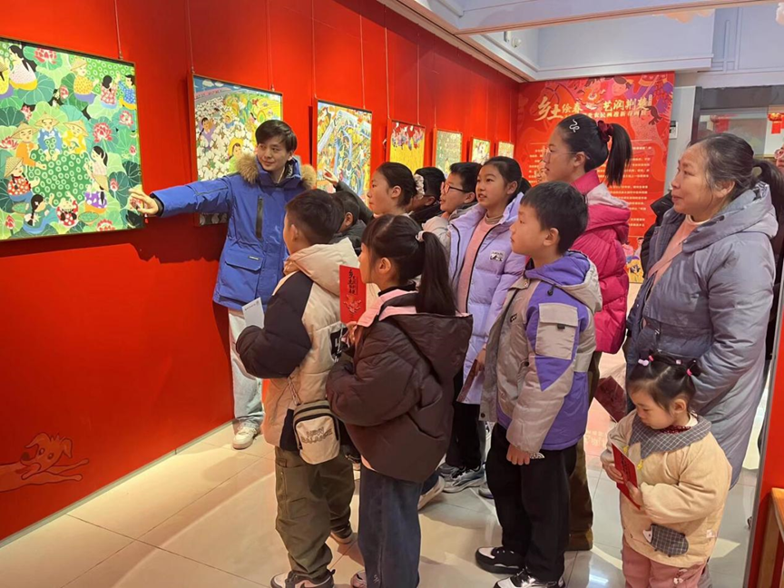 活动伊始,省群艺馆老师带领学生们走进美术展厅,参观展出的农民画作品。老师用生动易懂的语言,讲解每幅画作的创作背景、表现手法与艺术特色,引导学生们观察画中浓郁的生活气息、鲜明色彩和质朴造型,感受民间艺术蕴含的乡土情怀与乐观精神。学生们听得津津有味、不时赞叹,在艺术熏陶中初步领略传统民间绘画的魅力。