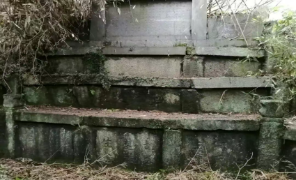 回到牌坊铺,沿着岭源河上行,左转来到邹家屋场,翻过山岭,在胡公九世孙、现岭源村支书胡卫的带领下,一路砍伐,一路搜寻,来到邹家屋场后火烧嘴中腰,在已弃用的原岭源小学屋后,便是胡楚英公何氏夫妻和兄弟莘和的墓地。墓地不大,坐西朝东,墓碑龛上几次加层。中上是“昇平人瑞”匾,下面中间是“胡公楚英生茔”,这便是胡公安息的地方。左边是“胡母何氏生茔”,应该安葬的是其妻何氏。右边是“胡公莘和生茔”,据胡卫讲,这是胡楚英公兄弟墓地。