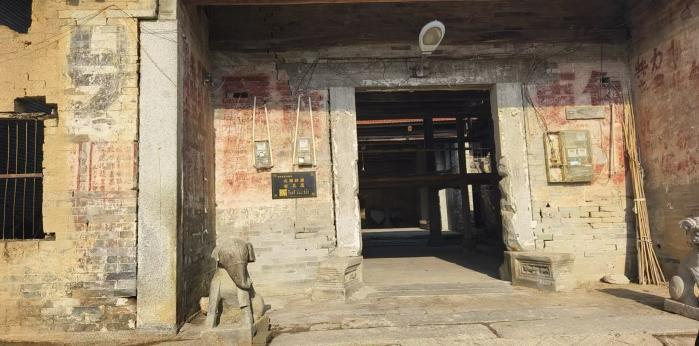 从牌坊铺出发,走过岭源河桥,向左前行约300米,我们一行来到了胡公发达后造的新屋。大门口进门左边挂有通城县文旅局颁发的古屋保护标牌。这座房子大体坐西北朝东南,前后三重,虽历经300余年,仍然干爽明亮,气势恢弘。门前的阶沿上摆满了古牌坊拆毁时搬到这里堆放的瑞兽石像。厢房和廊房已多处倒塌,另一些房子也历经多次改造,但从其仍留存的古朴粗大的木梁和粗重而不失精致的石柱上,不难看出当年建造者的匠心和用料考究。据胡公后人讲,石匠木匠师傅带一班人在胡家做工三年,都没有吃过一餐新粮!可见胡家的殷实和大气。如今,堂屋墙壁上的宣传栏记事和立壁上的标语犹在,似乎能分辨出“大跃进”时期集体记工分的影子,也能嗅出“文化大革命”的气息。而烧炸的大门石柱和门洞边石头上的弹洞,似乎还在诉说着当年日本强盗在通城烧杀掳掠的斑斑血泪!