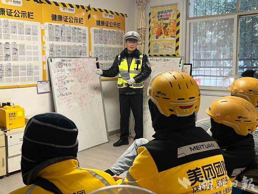 “‘跑单王’值得骄傲,‘罚单王’绝不可取。”“虽说工作生活要两不误,但在送餐路上边骑车边刷抖音这事可不能干!”2月2日下午,“晓说交通”宣教民警李晓东走进美团配送武汉工程大学站点,对15名交通违法记录较多的外卖骑手进行“回炉”培训。活动中,民警与站点负责人提前梳理了骑手们近期的高频违章行为,针对送餐过程中常见的不戴安全头盔、头盔不系卡扣、闯红灯、抢道逆行、边骑行边看手机等陋习,结合近期辖区内发生的典型交通事故案例,深入剖析违法行为的严重后果及法律责任,引导大家深刻认识到“安全才是最快的配送速度”。