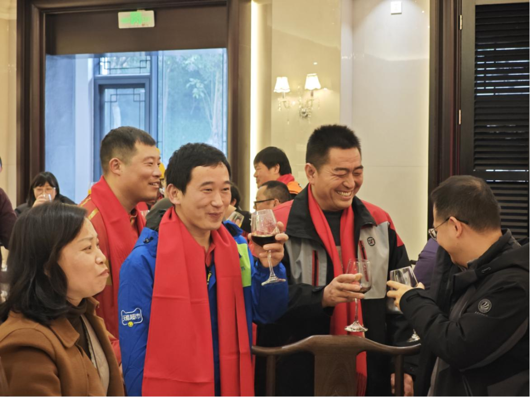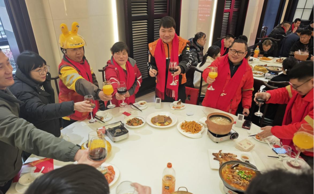 用餐期间,抽奖环节惊喜不断,欢呼声此起彼伏。相关职能部门的领导走近代表,围坐交谈、关切询问小哥们跑单及生活情况,一桌团年饭凝聚起新就业群体一家情。“氛围太好了,大家像亲人一样团聚,这顿饭太暖心了!”昌帝物流园朱师傅感慨道。外卖骑手夏师傅捧着礼包笑道:“有话说、有饭吃、有礼包拿,这场活动太实在了!”