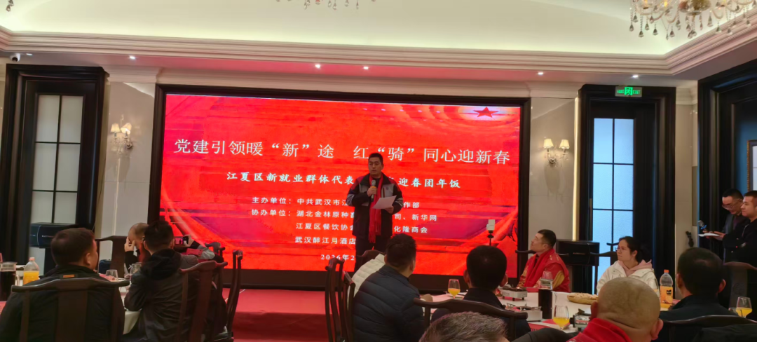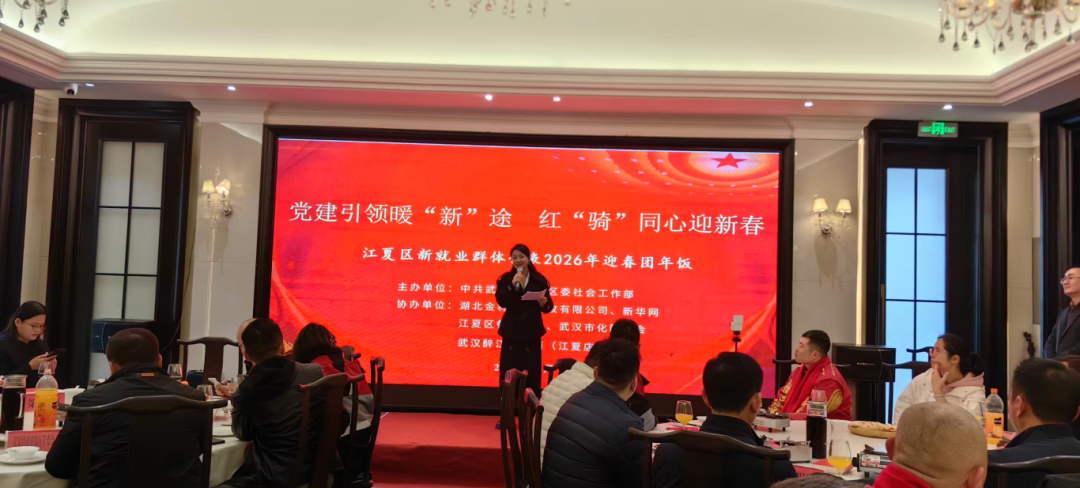 律回岁晚冰霜少,春到人间草木知。2月4日,江夏区委社会工作部组织的江夏区新就业群体代表2026年迎春座谈会暨“年饭一家亲”活动在醉江月酒店温情举行。40余名新就业群体代表与区委组织部、区总工会、区交通运输局等16个部门相关负责人齐聚一堂,让“城市新力量”既诉心声、提建议,又感受“家”的归属感。