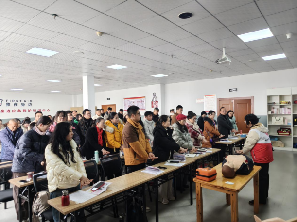本次培训是市红十字会针对春节期间返鄂学子及市民朋友需求推出的公益惠民活动。自1月8日开通报名以来,三场班次迅速报满。培训期间,市红十字会秘书长及副会长到现场视察指导,详细了解教学流程与实操演练情况,并与学员亲切交流,询问学习体会,鼓励大家认真掌握急救技能,真正学到、用好“救命本领”,让参训学员倍感温暖与鼓舞。