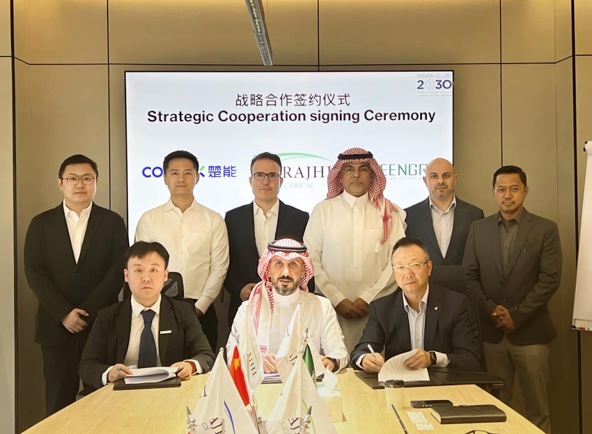 据悉,本次合作旨在积极响应沙特“2030愿景”中的能源转型战略,共同开拓中东储能市场。根据该协议,楚能将作为Al Rajhi Electrical在储能领域的首家中国战略合作伙伴,充分发挥在锂电池领域的研发实力与大规模制造优势,为Al Rajhi Electrical在沙特本地建厂提供先进的储能产品与全面的技术支持。未来三年,楚能将向Al Rajhi Electrical供应总计5.5GWh的储能产品,用于中东市场的本地化生产与项目建设。