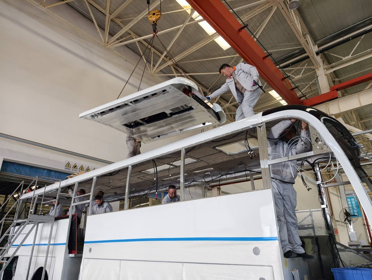 安装座椅、铺设线路、嵌入车窗框架……工具的低鸣声、零件搬运的碰撞声交织,忙碌而有序。