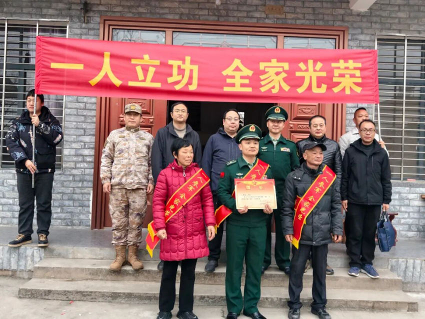 湖北日报客户端讯(通讯员章雨、刘园)近日,襄阳市樊城区退役军人事务局联合区人武部、武警襄阳支队等相关代表,专程为太平店镇小樊村现役军人章亮送上“平时战备训练三等功”喜报,村民们齐聚现场共同见证这份荣光。