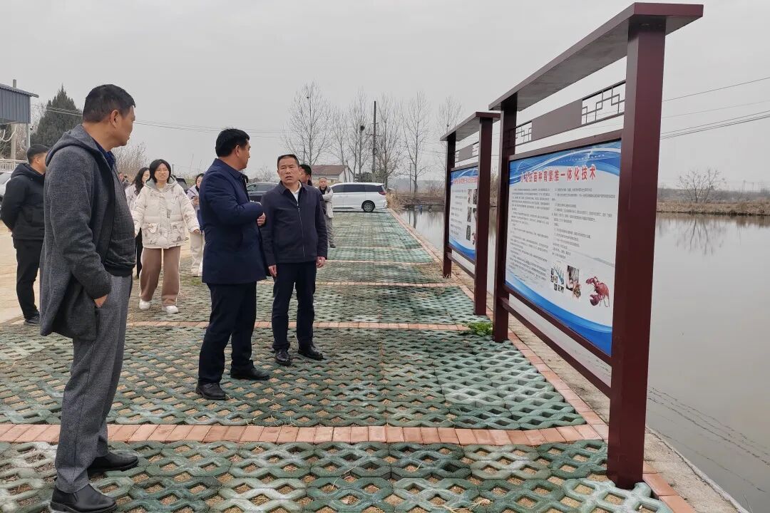 在团风县天天红水产养殖专业合作社养殖基地,考察组实地察看稻虾综合种养基地建设、生产运行及配套保障情况,与基地负责人深入座谈,细致了解养殖技术、市场销路、收益情况及发展堵点,为精准施策、靶向帮扶摸清第一手资料。